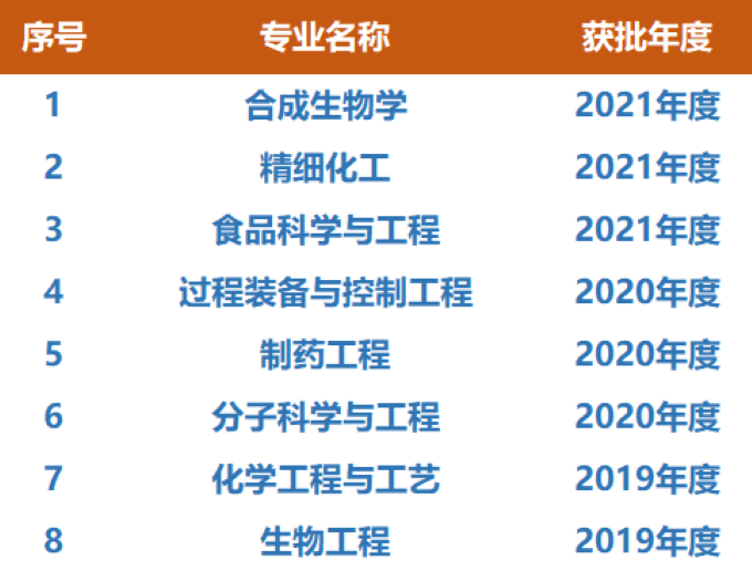 近日,教育部办公厅印发《关于公布2021年度国家级和省级一流本科专业建设点名单的通知》,化工学院申报的合成生物学、精细化工、食品科学与工程3个专业入选国家级一流本科专业建设点。截至目前,化工学院8个本科专业全部入选国家级一流本科专业建设点。