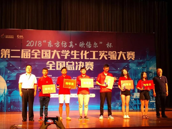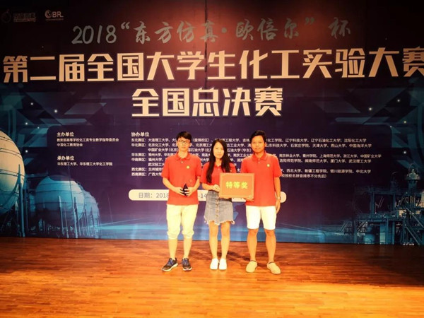 8月12日至14日,2018“东方仿真·欧倍尔”杯第二届全国大学生化工实验大赛全国总决赛在华东理工大学举行,由天津大学化工学院胡彤宇、姜峰、范江洋三位教师指导的2015级本科生房田田、陈强、刘会斌三名同学组成的天津大学代表队在本次比赛中获得了特等奖第一名的优异成绩。