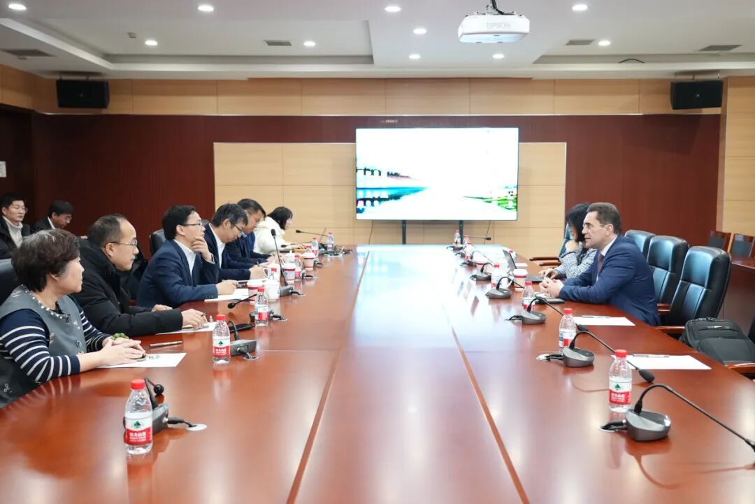 汪怀远对Thomas Altmann一行的到访表示热烈欢迎,详细介绍了天津大学化工学院在绿氢电解水催化剂、先进离子交换和分离膜、高安全固态电解质以及液流储能电池等领域的研发和产业化应用情况。他表示,学院期待与ACWA Power公司在联合科研攻关、成果转化、人才培养等方面探索新模式、取得新突破。