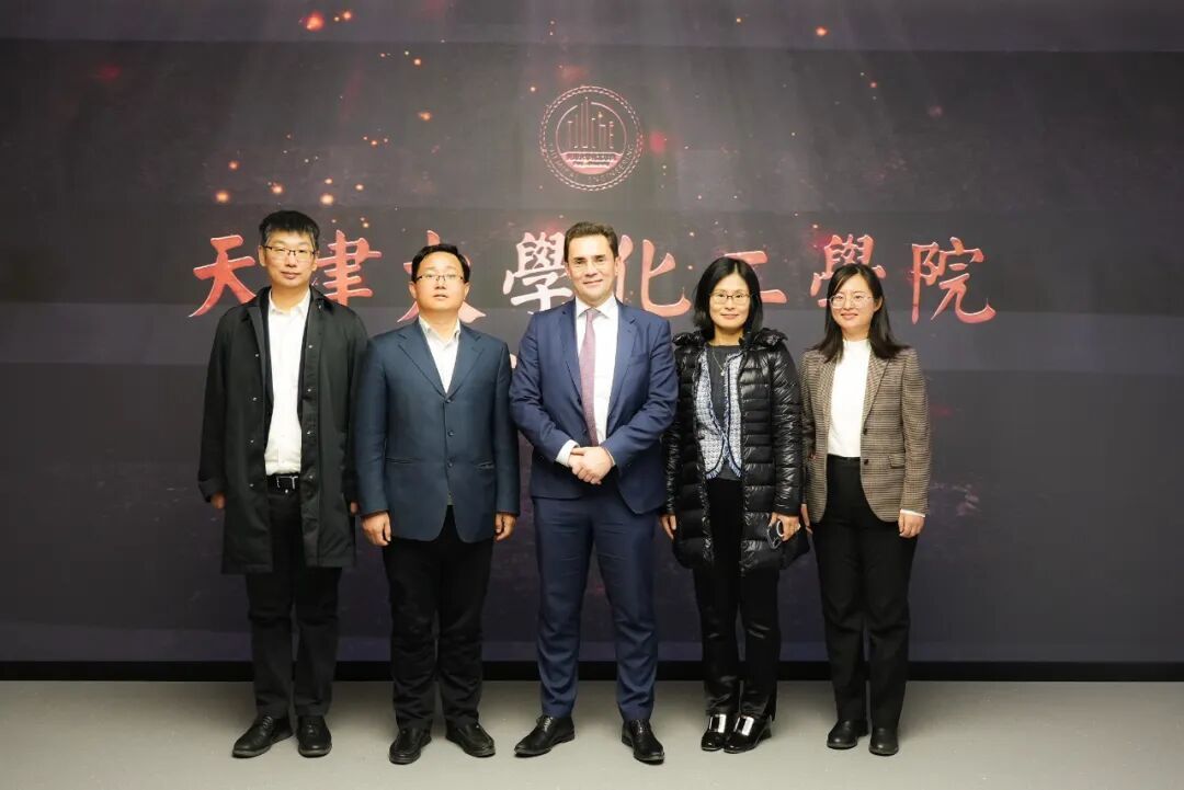 汪怀远对Thomas Altmann一行的到访表示热烈欢迎,详细介绍了天津大学化工学院在绿氢电解水催化剂、先进离子交换和分离膜、高安全固态电解质以及液流储能电池等领域的研发和产业化应用情况。他表示,学院期待与ACWA Power公司在联合科研攻关、成果转化、人才培养等方面探索新模式、取得新突破。
