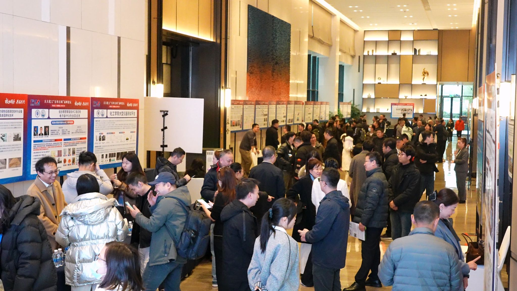 为促进深入交流,论坛特别设置了技术路演专区,天津大学首次组织化工学院30余人的师生代表团,携50项核心技术进行集中展示。会场内,技术展位排列有序,展板内容详实,吸引了来自四川及周边地区的百余家企业代表、校友代表驻足交流。路演现场气氛尤为热烈,校企双方围绕技术细节、应用场景及合作模式进行了充分而高效的沟通,为后续实质性合作奠定了坚实基础。