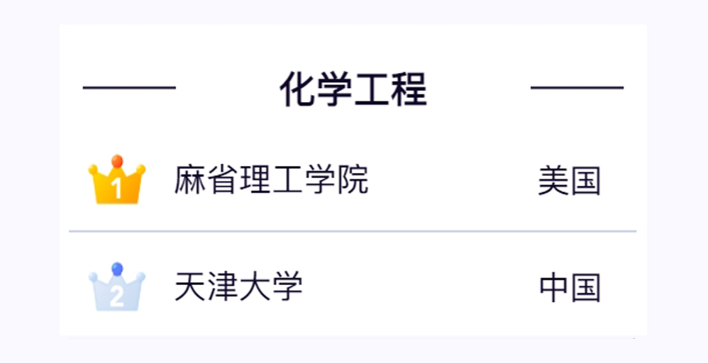 在化学工程学科方面,天大化工仅次于麻省理工学院,位列世界第二。