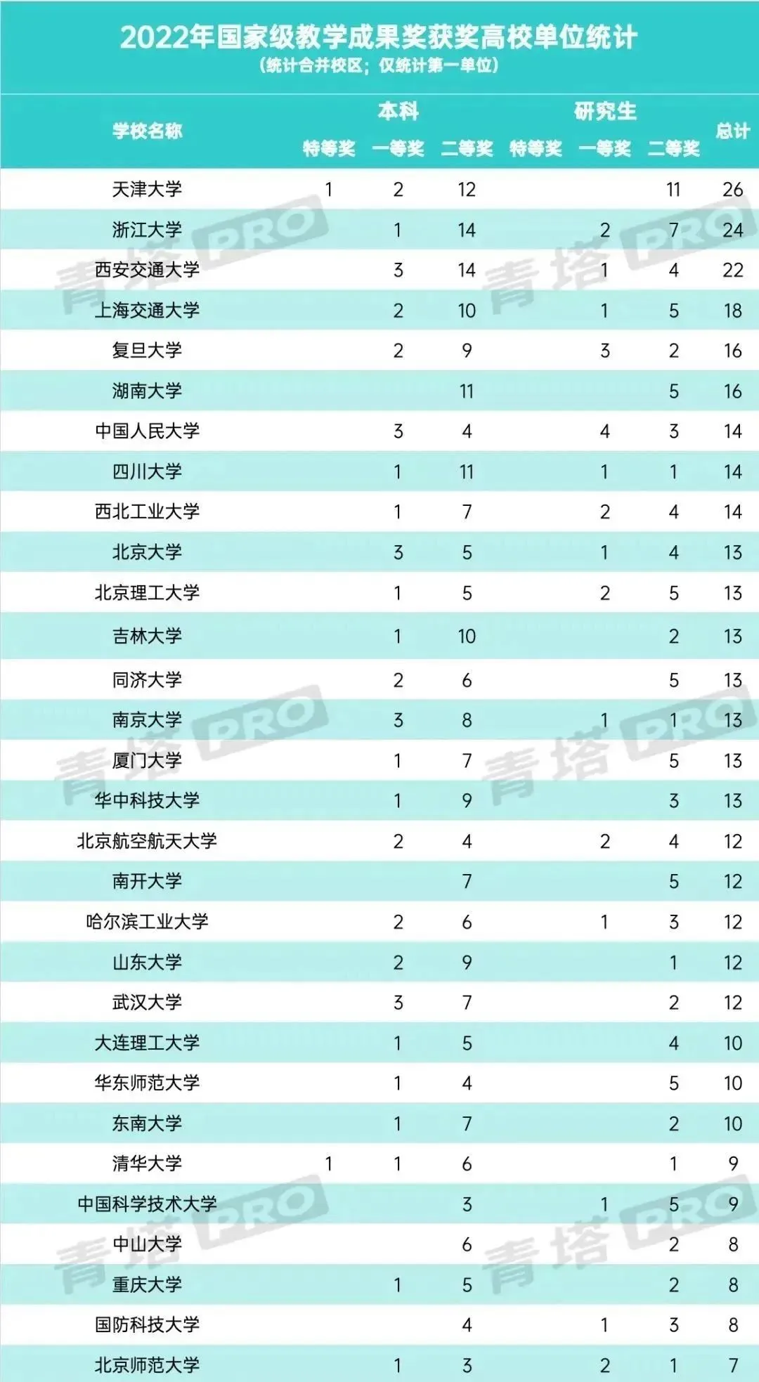 天津大学以26项获奖成果位列第一,其中,化工学院牵头完成的本科生教学成果——《引领未来、思维牵引、顶天立地卓越化工人才培养的中国方案与实践》获国家级教学成果一等奖,研究生教学成果——《“创新驱动”赋能国际一流化工研究生拔尖创新人才培养》获国家级教学成果二等奖,展现出天大化工在教育教学上的深厚底蕴和过硬实力。