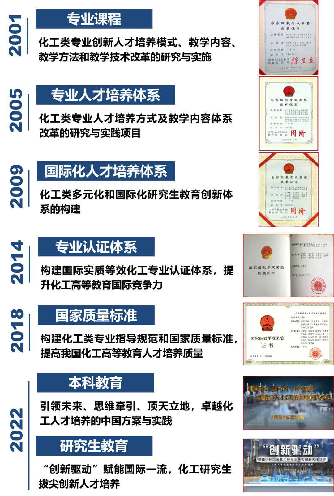 普通高等学校国家级教学成果奖每四年进行一次评选,天大化工自2001年起连续六次获评一等奖,始终站在中国化工高等教育改革前沿。