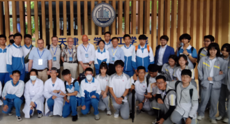 正值学院召开中英双边催化学术论坛,外国专家们对现场的科普实验也是兴趣盎然,与师生们进行了深入互动与交流。