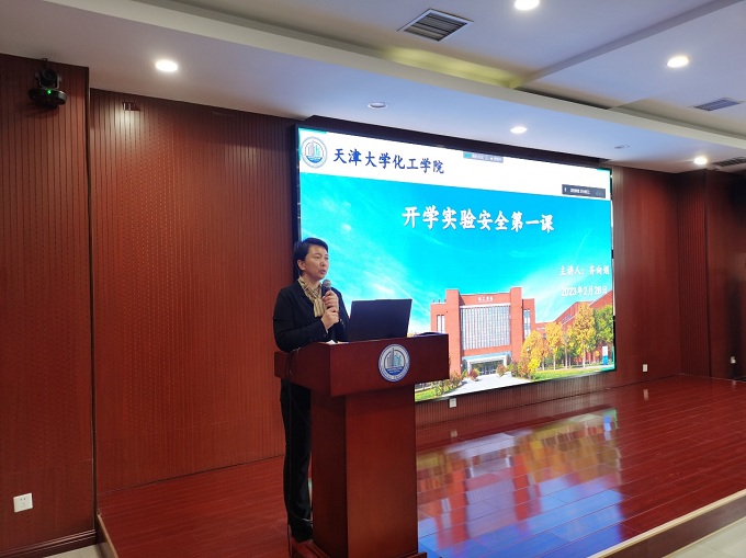 新学期,为切实加强安全教育,增强师生安全意识和应急处置能力,有效防范安全事故发生,保障师生人身健康安全,确保各项工作平稳有序开展,2023年2月28日,化工学院组织开展了“实验室安全第一课”安全教育活动。实验室负责人、进入实验室的研究生、本科生500余人参加了本次活动。本次活动邀请2021年教育部实验室安全检查组的专家、化工技术实验中心高级工程师齐向娟老师主讲。活动由王军副院长主持。