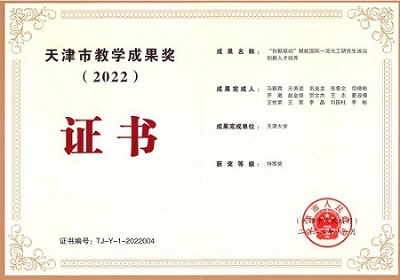近日,由天津大学化工学院马新宾教授牵头申报的教学成果《“创新驱动”赋能国际一流化工研究生拔尖创新人才培养》获得天津市研究生教学成果奖特等奖。