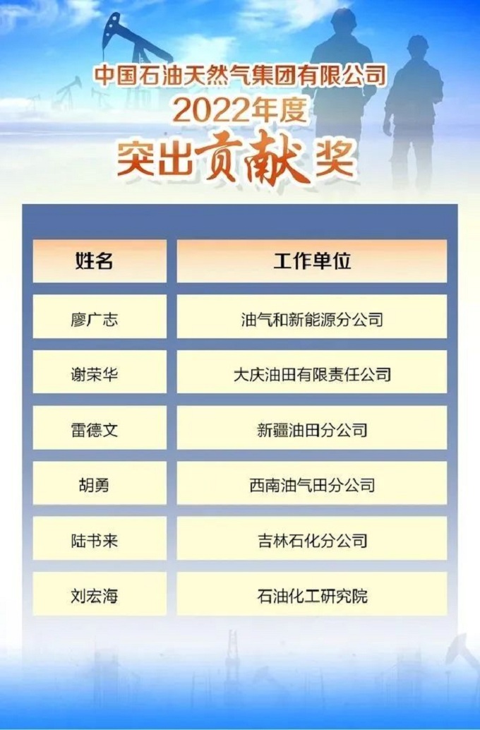 1月13日,天津大学化工学院校友陆书来( 87级高分子专业)、刘宏海( 88级催化专业)荣获中国石油天然气集团有限公司2022年度突出贡献奖。