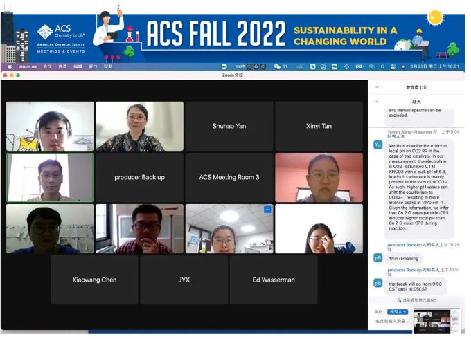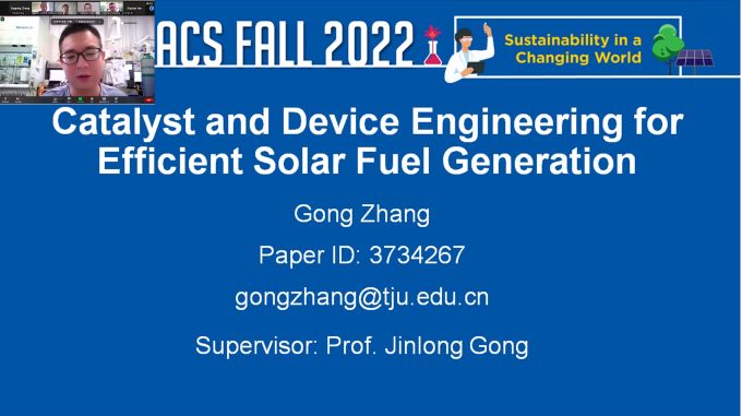 2022年8月21-25日,美国化学会(ACS)2022秋季年会在美国芝加哥伊利诺伊州以线上、线下结合的方式顺利召开,本次会议的主题为“Sustainability in a Changing World”。经ACS中国办公室和ACS国际分会推荐和遴选,天津大学化工学院新能源化工团队2017级博士研究生张恭受邀在线参加能源化学分会场(Division of Energy and Fuels)。