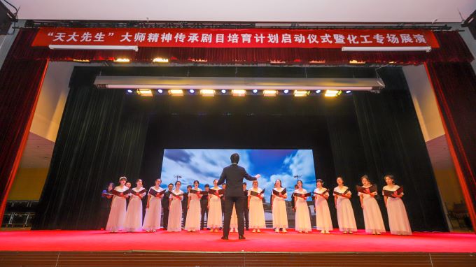 校团委管虹介绍了“天大先生”大师精神传承剧目培育情况。随后,由天津大学化工学院师生自编自导自演的原创话剧《争一口气》正式发布。这是剧目培育计划的首场展演。