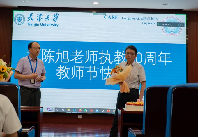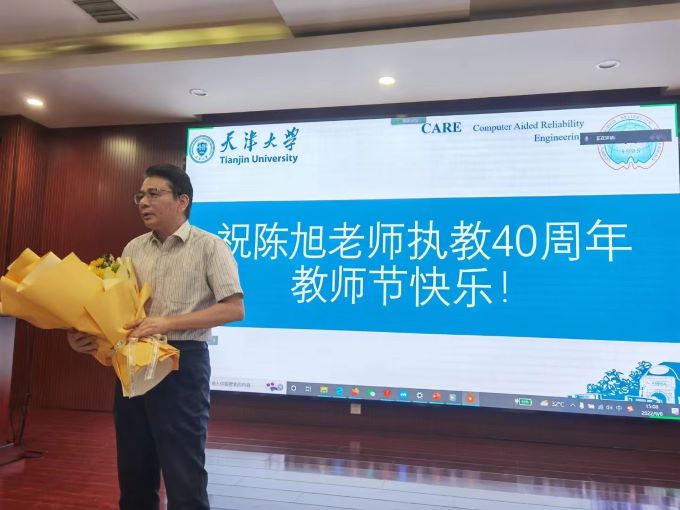 2022年是CARE(Computer Aided Reliability Engineering)实验室创建者陈旭老师执教的第40个年头,9月8号组会之际,在校的五十余位师生悄悄的为陈老师准备了一场简单的庆祝仪式。正常组会结束后,同学们播放了海内外众多毕业的CARE学子录制的祝福视频,深情回忆了在陈旭老师指导下求学的美好时光。在校学子送上了每人参与手工制作的花束,一支支花更是一份份浓浓的祝福。