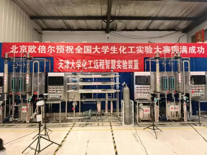 远程智慧化工实验装置,是天津大学化工学院化工基础实验中心在“新工科”建设背景下,结合人才培养的切实需求,围绕培养学生综合能力,深化新工科建设,培养学生的创新精神和创业能力以及安全意识,与北京欧倍尔软件技术开发有限公司联合开发的新型实验教学装置。学生不用进入实验室,在家或在宿舍,就可以直接操纵实验室内的真实实验装置,同时观察实验装置中的真实实验现象。实验装置模拟了现代化工企业中控室加摄像头的形式,在学校就可以体会在现代化工企业中的远程巡查和远程监控,很好的契合了中控远程操作的现实情境。竞赛中参赛选手不用到达现场,在家就可以比赛。该装置为大赛营造了企业化工情境,也保证了在疫情期间,全国性大赛的顺利开展。