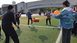赛场上你追我赶不分伯仲,足球场上师生趣味素拓运动项目也开展地如火如荼。花式足球表演、师生足球友谊赛、不倒森林、八人九足、履带传送、趣味接力、套圈赢奖、八字跳长绳……丰富有趣的活动吸引了众多师生的参与,欢声笑语在操场上空久久飘荡。