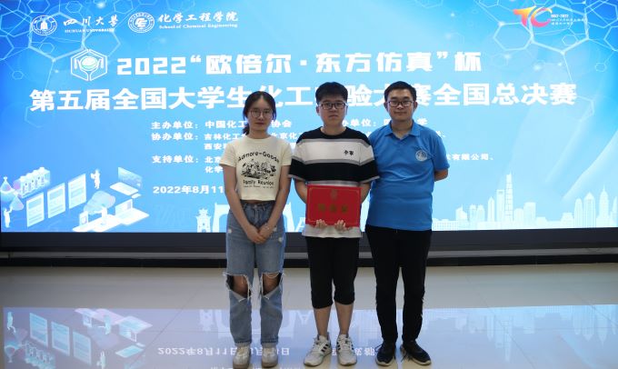 2022年8月14日,“欧倍尔﹒东方仿真”杯第五届全国大学生化工实验大赛全国总决赛在四川大学落下帷幕,由天津大学化工学院2019级本科生汪涵、龚萱、李林发三位同学组成的“求是拓新”队,荣获全国总决赛特等奖第一名。这也是该项赛事举办以来,天大化工学子五获特等奖,四夺第一名,天津大学也成为了唯一在历届大赛中都斩获特等奖的高校。