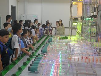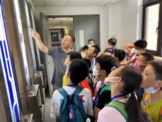 孩子们带着对化学化工满满的好奇心与探索欲,来到化工基础实验中心,相继参观催裂化装置模型,参与流体流动演示实验。