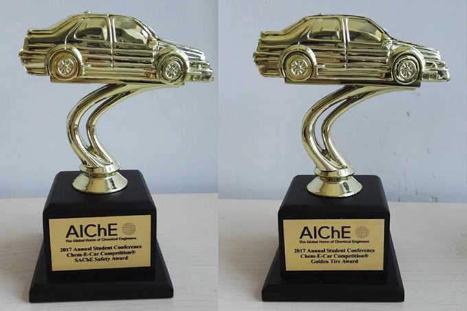 同年10月在美国明尼苏达的Chem-E-Car比赛中,参赛作品‘Pegasus’一举斩获‘Golden Tyre Award’(金轮胎奖)和‘SAChE Safety Award’(最佳安全奖),实现了中国大陆参赛队奖项的零突破!