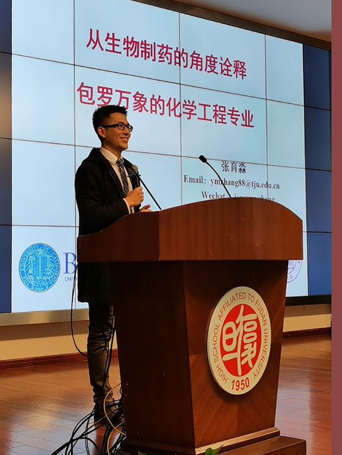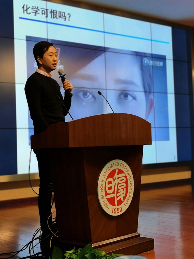 12月19日下午,化工学院“名师进中学”活动走进上海复旦大学附属中学,我院优秀青年教师代表翁哲教授和张育淼教授,为100余名学校师生带去了精彩的专题讲座。复旦大学附属中学党委书记郭娟、科研室主任丁鸣、科研室副主任曾德琨、升学指导办公室主任丁恒及全体化学教师参加了此次报告会。