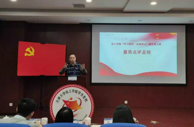 11月15日晚,天津大学化工学院“学习榜样·诉说初心”微党课大赛暨第43期积极分子党校实践答辩在50楼A223谢克昌报告厅举行。化工学院党委书记赵金铎、党委副书记李晶、党委委员刘春江、学工办主任、团委书记汪露、催化科学系党支部书记赵宜成、学生工作党支部书记靳学峰以及部分辅导员担任评委,第43期积极分子党校学员代表参加并观摩大赛。活动由学工办副主任、团委副书记赵书航主持。