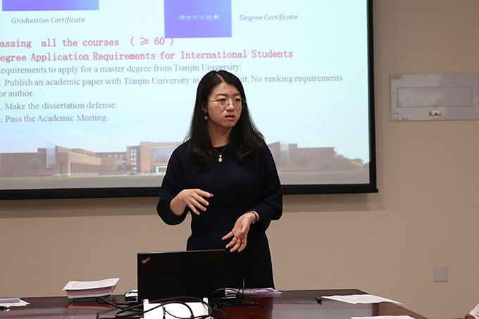 为增强留学生对学院教学管理制度的进一步了解,加强2019级留学生新生与学院的联系,2019年10月16日下午,天津大学化工学院于北洋园校区50楼A221会议室召开了研究生留学生新生班会。2019级27名留学生新生参加了此次班会,会议由研究生教务员郭婧主持。
