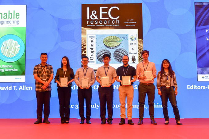 7月3日上午,会议圆满闭幕。闭幕式上,美方主席Yinlun Huang教授做了闭幕致辞,总结了本次大会的成果,同时对所有参会人员致以谢意。大会从所有报告中评出了6个最佳学生口头报告奖,8个最佳墙报奖,分别由康奈尔大学Fengqi You教授和ACS出版社Managing Editor乔英红博士为获奖者颁发最佳学生口头报告奖,由学术委员会主席Ignacio Grossmann教授和韩布兴教授为获奖者颁发最佳墙报奖。最后,为了表彰志愿者在会议期间的突出贡献,由中方主席马新宾教授和Marianthi Ierapetritou教授共同为十位杰出志愿者颁发荣誉证书。