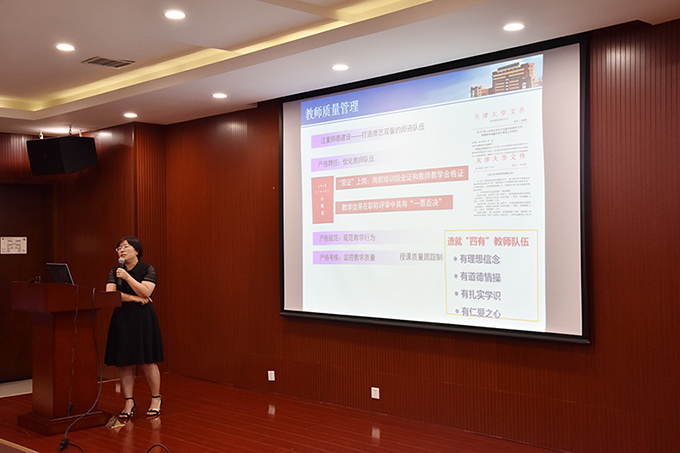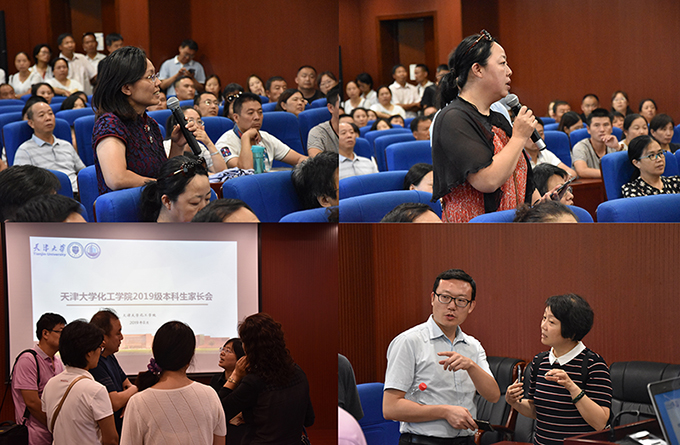 高旭东汇报学院学生管理情况。他首先向家长们介绍了天津大学的悠久历史——开高等教育之先河,以兴学强国为使命,是中国第一所现代大学;立高教发展之潮头,是首批“211”、首批“985”、并入选“双一流”建设的高校;站学科建设之鳌头,在工科见长的背景下,开创性提出强工、厚理、振文、兴医的举措。同时在拥有厚重历史、强劲实力的化工学科下,学生可以得到良好的发展。