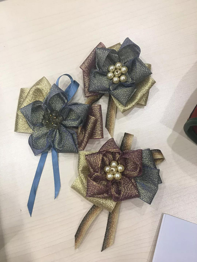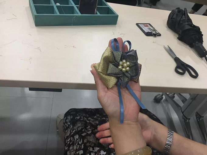 专业胸针指导教师张硕精心为大家准备胸针制作所需的各种材料与工具,仔细讲解胸针制作的起源、发展和制作过程,手把手教大家如何把一块块炫彩的布与水晶珍珠组合串连在一起。在张老师的指导下,大家小心翼翼地将每块布、每粒珠子都串连、固定,绚丽通透的水晶,处处散发出夺目的光芒,一双双巧手制作出一枚枚精美独特的胸针,大家看着自己亲手制作的胸针兴奋不已,纷纷迫不及待地佩戴在胸前,胸针画龙点睛之美彰显出女性独特的优雅魅力。