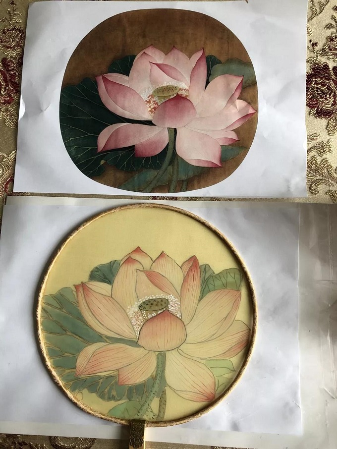 首先毕业于南开大学文学院东方艺术系李欣老师讲解了团扇的历史、出水芙蓉图的绘画步骤和染色方法,然后教职工们选取了自己喜欢的团扇,分区域的填涂着色彩,以及用不同的干湿程度叠置色彩,色彩逐渐在扇子上定型,一双双巧手勾勒出一幅幅生动鲜活的扇面,一把把与众不同的手绘团扇制作完成。大家兴趣盎然,场面活泼热烈。