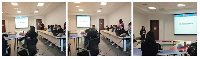 听取调研报告后,化工学院2016级硕士生材化班党支部的三位同志结合自身实际,分别进行了实验室安全预案分享,向大家介绍了自己关于实验室操作的相关经验心得,涉及实验室药品、仪器、反应装置等各方面的注意事项。