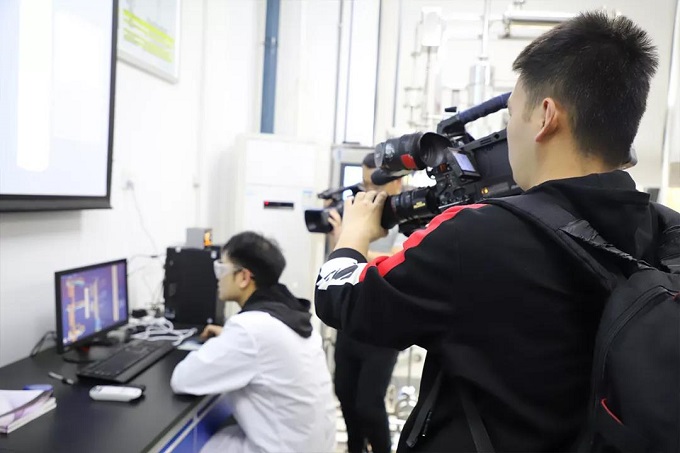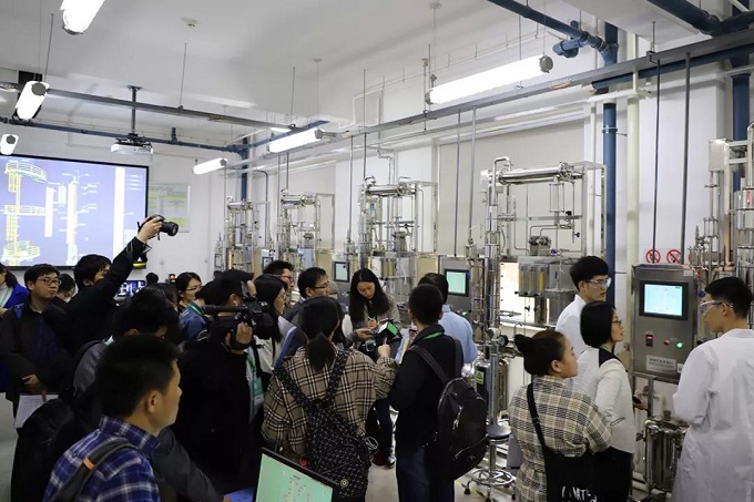 之后记者们来到化工学院基础实验中心,了解本科生化工实验室相关情况。学校注重培养学生的工程观念,通过本科生化工实验室课程,提高学生综合解决问题的能力,重视实践能力。