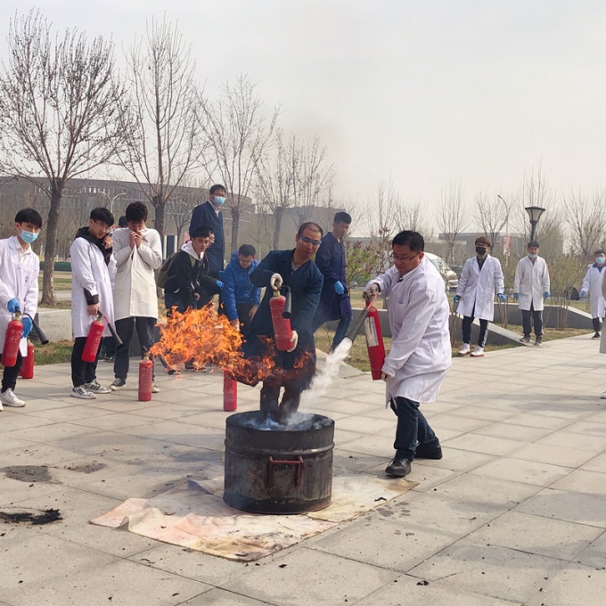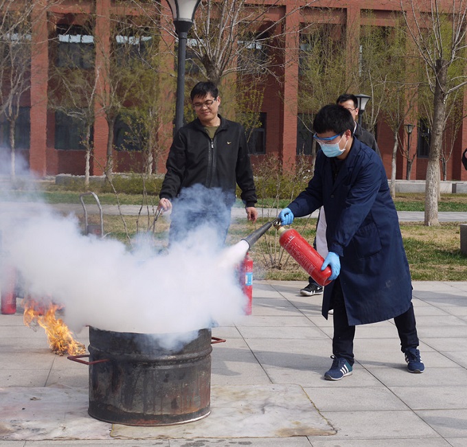 首先,防火科科长弓保津首先强调了实验室安全的重要性,提醒大家应遵守实验规程,减少安全事故的发生。随后他给大家普及了消防相关的安全知识,要求大家要做到“四懂四会”,增强消防安全意识。最后,弓保津科长针对实验室初期火情的扑灭进行了培训指导,规范动作要领,提高应急处置能力。在场师生也都纷纷进行了实地操作,掌握灭火器的使用要领。