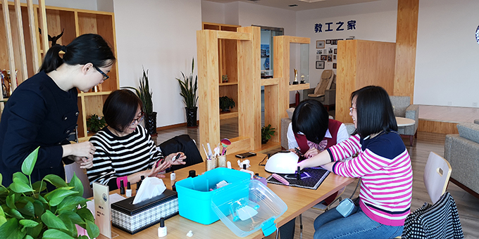 3月14日,化工学院工会举办了美甲活动,指导老师对打磨甲形、磨平边缘、剪去死皮、抛光甲面、打蜡、涂护理油等步骤进行了仔细地讲解和示范,同时传授了手部健康护理知识。精心护理过的指甲给女教职工们更增添了几分知性、成熟与美丽,为奋战在科研教学一线的女教职工们带来一抹亮丽的色彩。