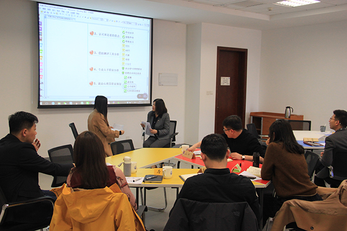 本场培训主要聚焦化工学院毕业生职业生涯规划如何开展、毕业生就业咨询如何进行这两个问题,进行了连续4个半小时的高强度“集训”。 PTT国际专业讲师、CCDM中国职业规划师、国家生涯规划师文成玉老师根据其多年从事职业生涯规划的工作经验,分别从:当前企业招聘规则、毕业生求职筹备、职业性格特质测评、化工类行业/企业深度调研、毕业生就业咨询步骤这5个部分,为参加培训的老师们系统讲述了大学生职业生涯规划以及就业咨询工作该如何开展。在培训最后,文成玉老师现场为一名存在着择业困惑的2019届化工学院硕士毕业研究生进行了就业咨询。丰富且生动的课程讲授,让现场参训老师尤其是年青辅导员们受益匪浅。