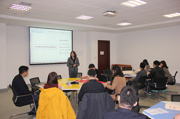 3月21日下午,化工学院学工发展论坛特别迎来了教育部中国“互联网+”大学生创新创业大赛专家委员、万学教育科技集团华北区产品总监文成玉老师带来的大学生职业规划谈心谈话专题培训。化工学院党委副书记高旭东,天津大学就业指导中心唐婧亚老师以及化工学院学生工作办公室全体辅导员参加培训。
