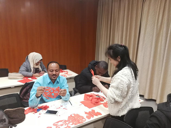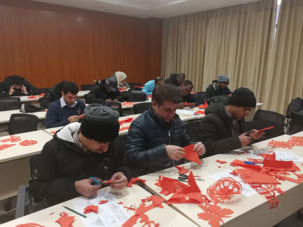 2019年春节来临之际,为丰富留学生的课外生活,让留学生深入体验中国传统艺术的魅力,1月15日上午,天津大学化工学院开展了手工剪纸喜迎新春活动,邀请国际教育学院陈宇老师为二十余名外国留学生研究生带来了一堂别开生面的剪纸艺术体验课,让他们感受中国传统民间艺术的博大精深。