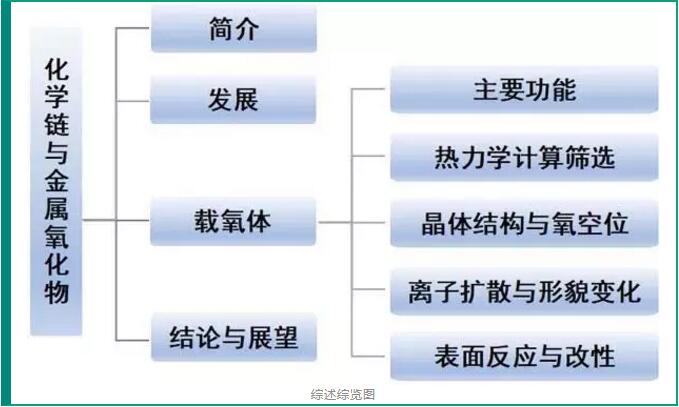作为一种新兴的清洁、有效能源转化手段,化学链技术近年来得到了广泛的关注。化学链指重新设计反应路径,将过程分解为不同空间或时间内进行的两个或多个子反应,通过载体介质的反应和再生在系统中传递物质和能量。在还原床中,借助金属氧化物中的晶格氧实现燃料的氧化利用,然后在氧化床中,被还原的金属氧化物的晶格氧得到补充,完成循环。化学链技术避免了燃料与空气的直接接触,杜绝了有害气体的释放,节约了气体分离需要的能量。化学链技术的核心是载氧体,可以广泛用于发电过程CO2原位捕集,部分氧化制取高纯度CO/H2,选择性氧化制取化学品、氨等多种过程。