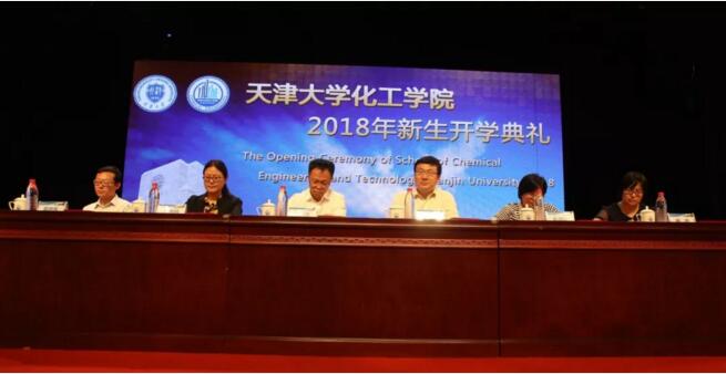 2018年9月16日下午三点,天津大学化工学院于求实会堂举行2018年新生开学典礼。华陆工程科技有限责任公司总工程师、全国工程勘察设计大师山秀丽,化工学院党委书记王志,院长马新宾,副院长夏淑倩,党委副书记高旭东,办公室主任杨宏,2018级本科生班导师,2018级研究生指导主任,本科教学管理办公室、研究生管理办公室和学生工作管理办公室各位老师,全体2018级本科生、硕士生、博士生共一千四百余人参加了本次典礼,典礼由党委副书记高旭东主持。