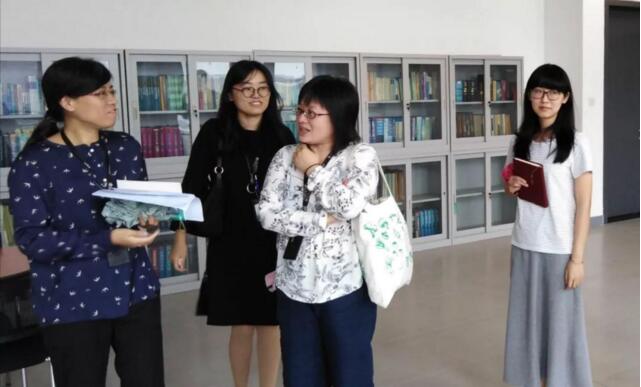 杨宏老师对图书馆领导、老师的到来表示欢迎,并对我院资料室的整体情况进行了介绍。期间,蔡向昱老师就学院资料室规模、人员配置、专业书目采购、电子化管理、图书资源经费使用等基本情况进行了具体介绍。