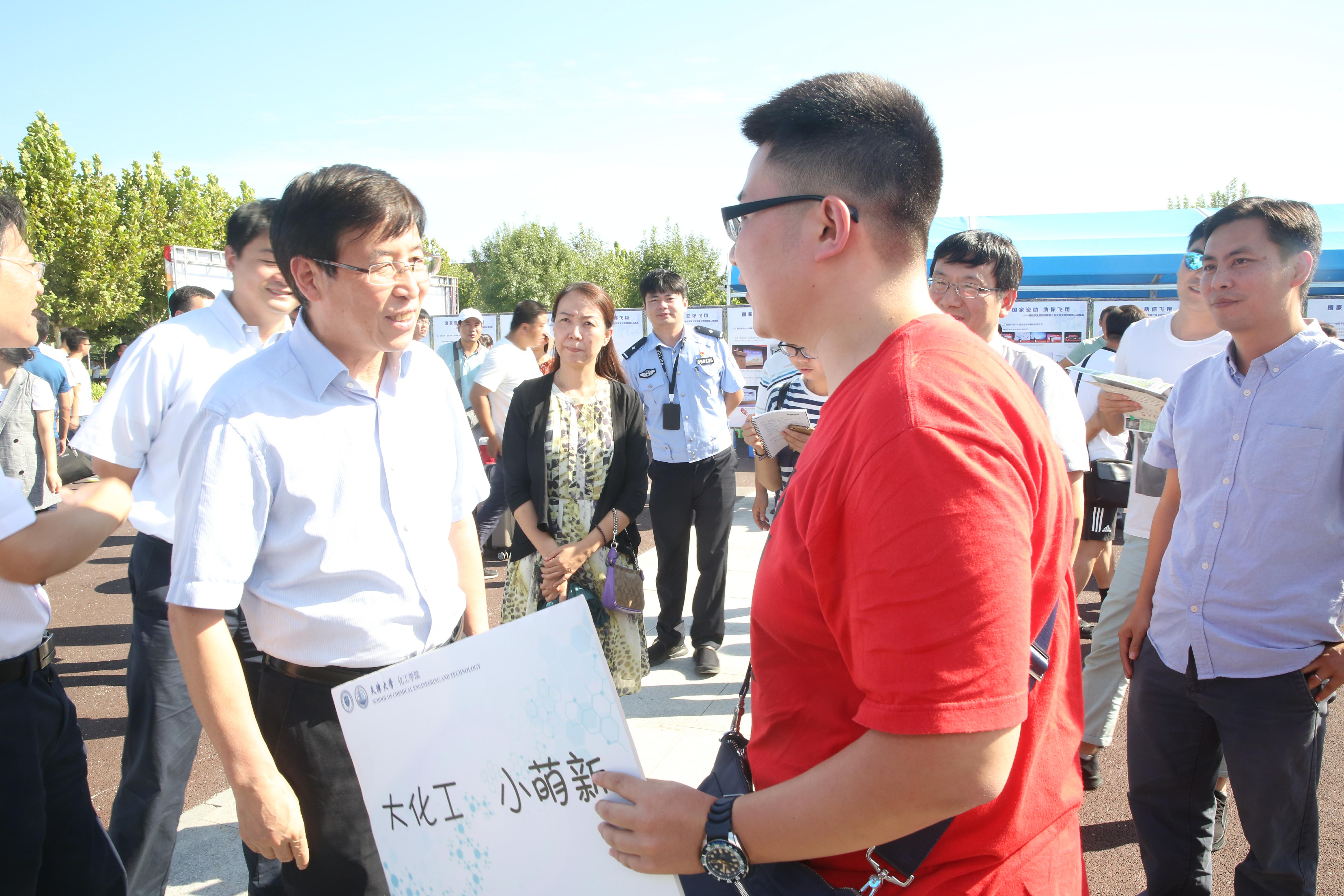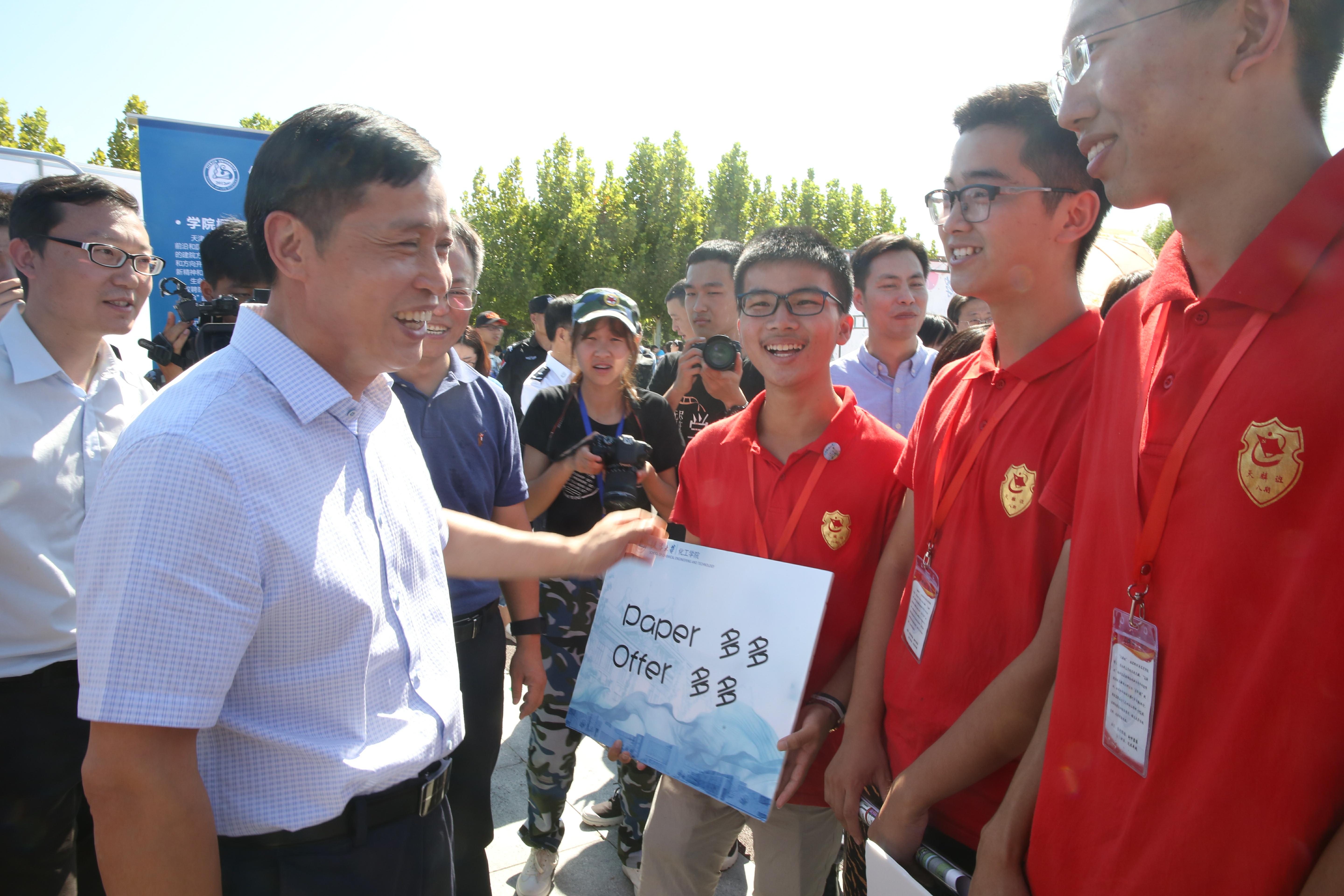 下午天津大学党委书记李家俊前来视察迎新工作,在迎新点与新生亲切交谈。