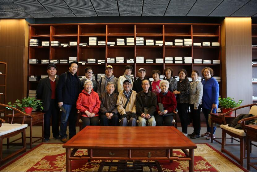 队伍中82岁高龄的马沛生老先生老当益壮,在参观过程中从未掉队,当看到他当年亲自编著的《化工热力学》、《论文选题与写作:化学化工类》、《化工物性数据简明手册》等十余本图书均在馆藏陈列当中,老先生非常激动,主动与书籍合影留念。