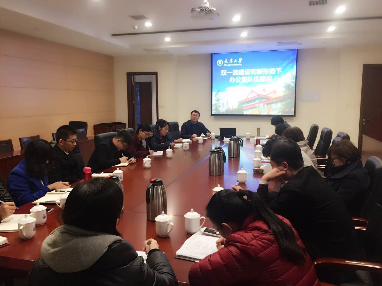 11月2日,化工学院党委书记王志以“双一流建设和新形势下办公室队伍建设”为主题,为机关党支部进行了“两学一做”学习教育专题党课,学生工作党支部和部分办公室教师参加了学习。