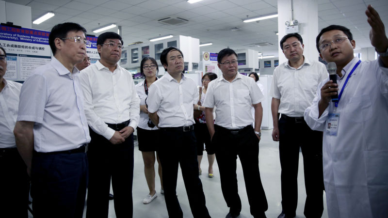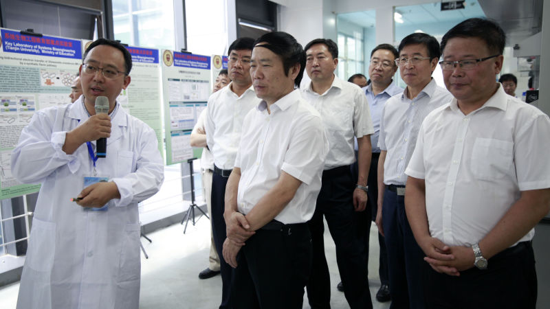 7月11日,科技部党组成员、副部长徐南平院士一行7人来到天津大学,专程调研天津大学合成生物技术科研情况并与我院合成生物学团队进行了座谈。天津市副市长何树山、天津大学校长李家俊与天津市科委、武清区委区政府及天津大学科研院、化工学院相关负责人陪同参观并参加了座谈会。