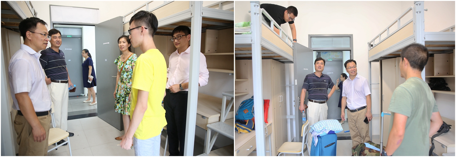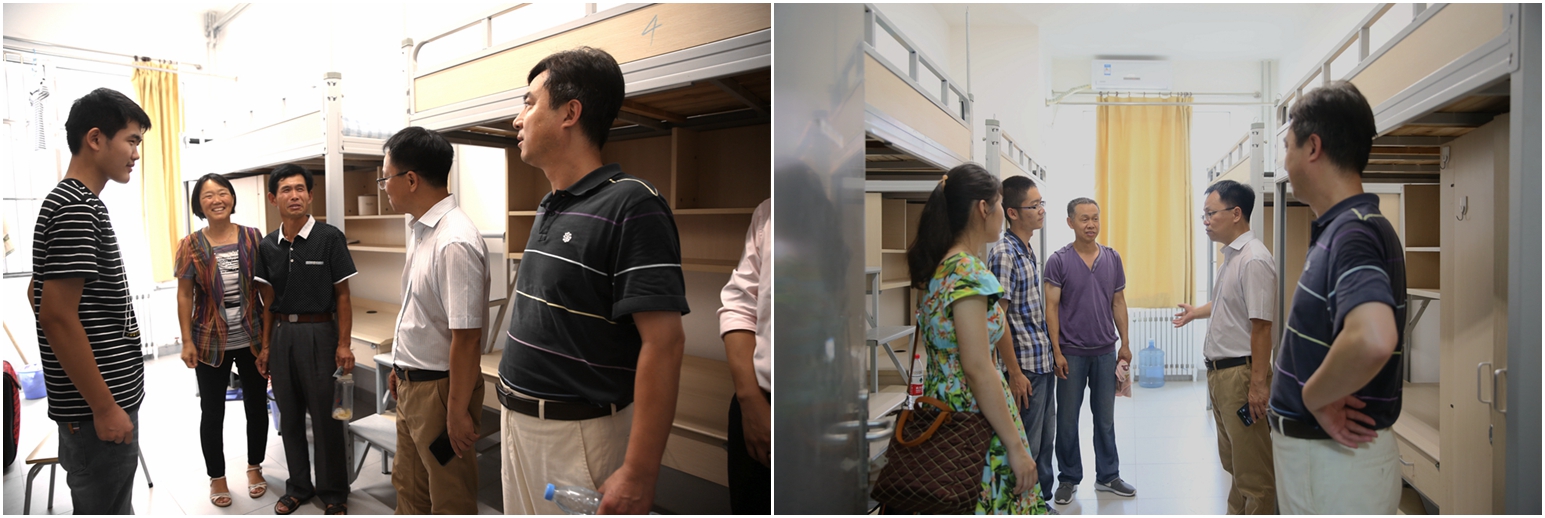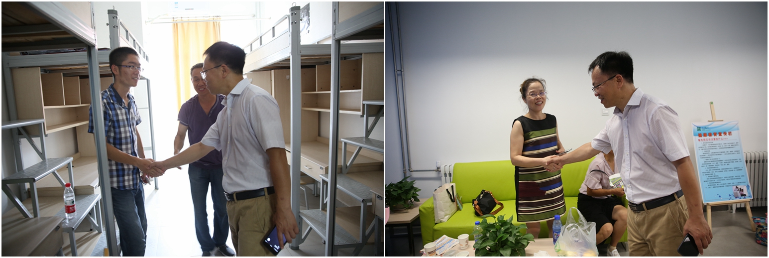 化工学院领导班子视察学生宿舍,了解新生住宿情况,慰问新生和家长。