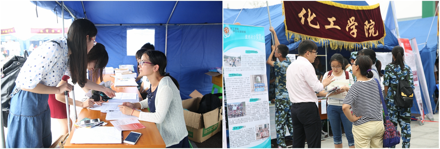 上图:认真等待、热情接待的化工学院迎新工作人员。
