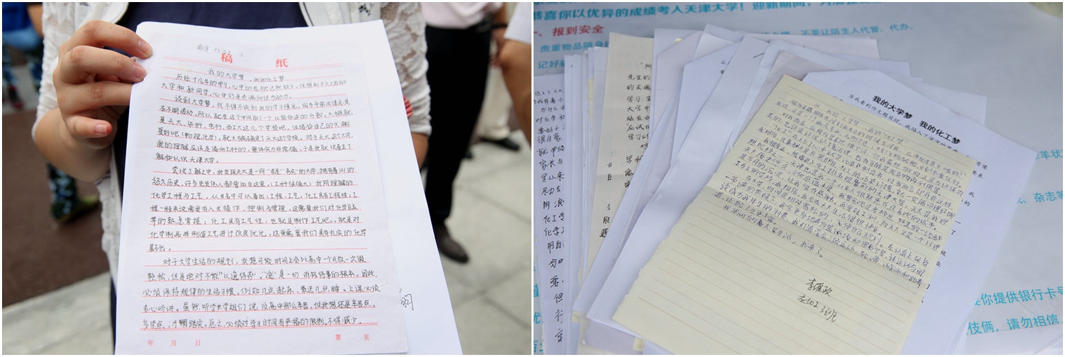 上图:新生的“入学作业”:用文字抒写我的化工梦、我的天大梦。