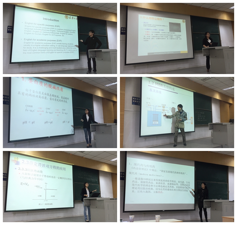 化工学院副院长夏淑倩出席比赛。周志江、冯亚凯、王宇新、史清洪、郑嘉明、赵广荣、陈旭作为食品科学与工程、高分子科学与工程、化学工程、生物化学、化学工艺、制药工程、过程装备与控制工程七个专业推选的教学督导,出任比赛评委。任相魁等12位青年教师作为化工学院各专业推选出的参赛教师参加此次讲课比赛。