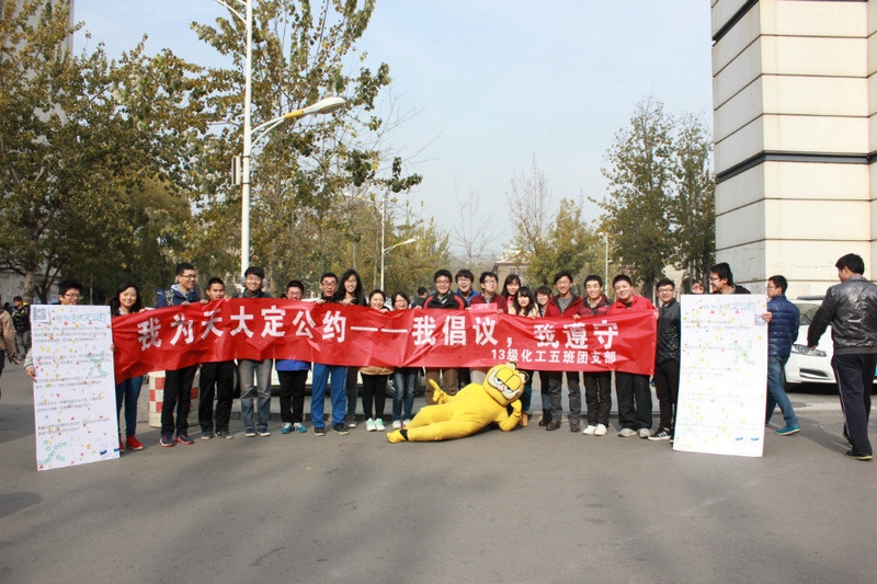 化工学院2013级化工五班团支部成立于2013年8月,由来自全国18个省市的27名团员构成。近两年来,支部不断完善组织建设,定期安排组织生活,按时进行推优工作,以“爱国荣校”为主线,开展高质量系列主题团日活动,形成了独具特色的“化五模式”,取得了良好效果和成绩。