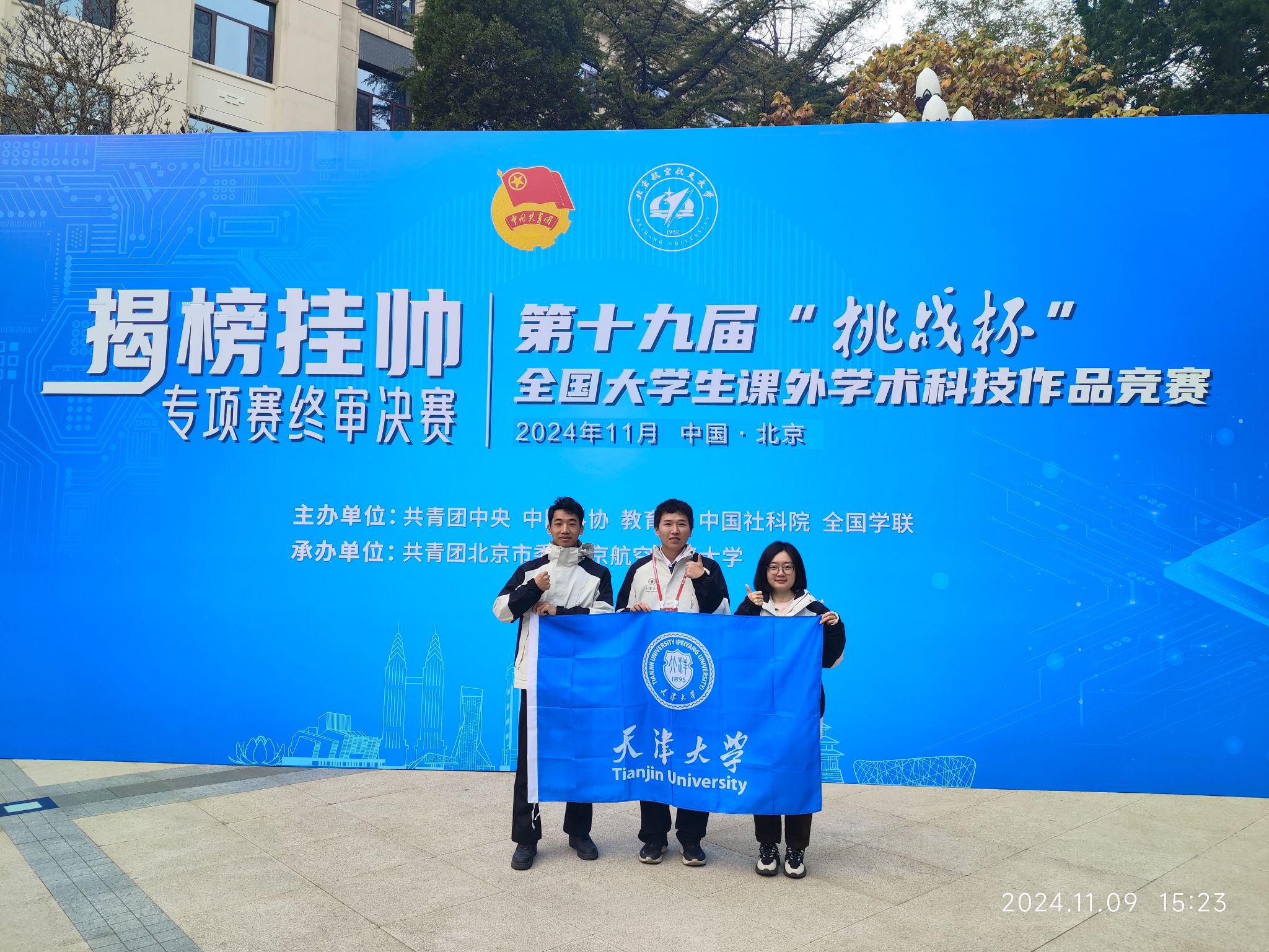近期,第十四届“挑战杯”中国大学生创业计划竞赛(简称“小挑”)全国决赛与第十九届“挑战杯”全国大学生课外学术科技作品竞赛(简称“大挑”)2024年度“揭榜挂帅”专项赛接连成功举办。两项竞赛中化工学院学子再创佳绩——大挑“揭榜挂帅”专项赛斩获特等奖一项;“小挑”斩获银奖两项。《CO₂捕集与原位转化技术制碳酸丁烯酯》获大挑“揭榜挂帅”专项赛特等奖;《“血”落无痕—血液接触型医疗器械隐形护甲》获“小挑”国赛科技创新与未来产业组别银奖;《数字余光—助力欠发达地区跨越数字教育鸿沟的先行者》获“小挑”国赛社会治理与公共服务组别银奖。