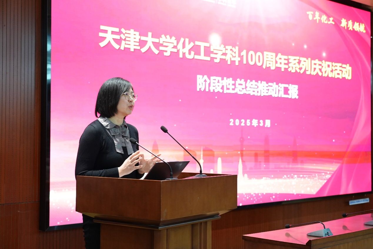 党委副书记李晶进行天津大学化工学科100周年系列庆祝活动阶段性总结推动汇报。她向大家展示了目前已完成的相关工作和取得的成绩,并介绍了下一步工作计划。化工学科百年系列庆祝活动,不仅是对学科百年成就的致敬,更是激发师生校友共同奋斗、展望未来的新起点,她号召全体教职工积极参与,贡献力量,为推动学科持续繁荣奠定坚实基础。