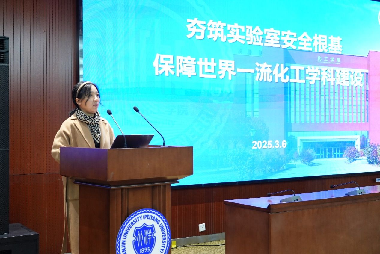 办公室副主任贲宇恒进行实验室安全工作专题汇报。她从实验室安全工作的重要意义、学院实验室安全现状与问题、实验室安全工作要求、实验室安全工作注意事项几方面展开,号召大家高度重视,严格落实安全管理制度,规范操作流程,定期检查设备,及时排除隐患,夯实安全根基,为化工学科发展营造安全稳定良好氛围。