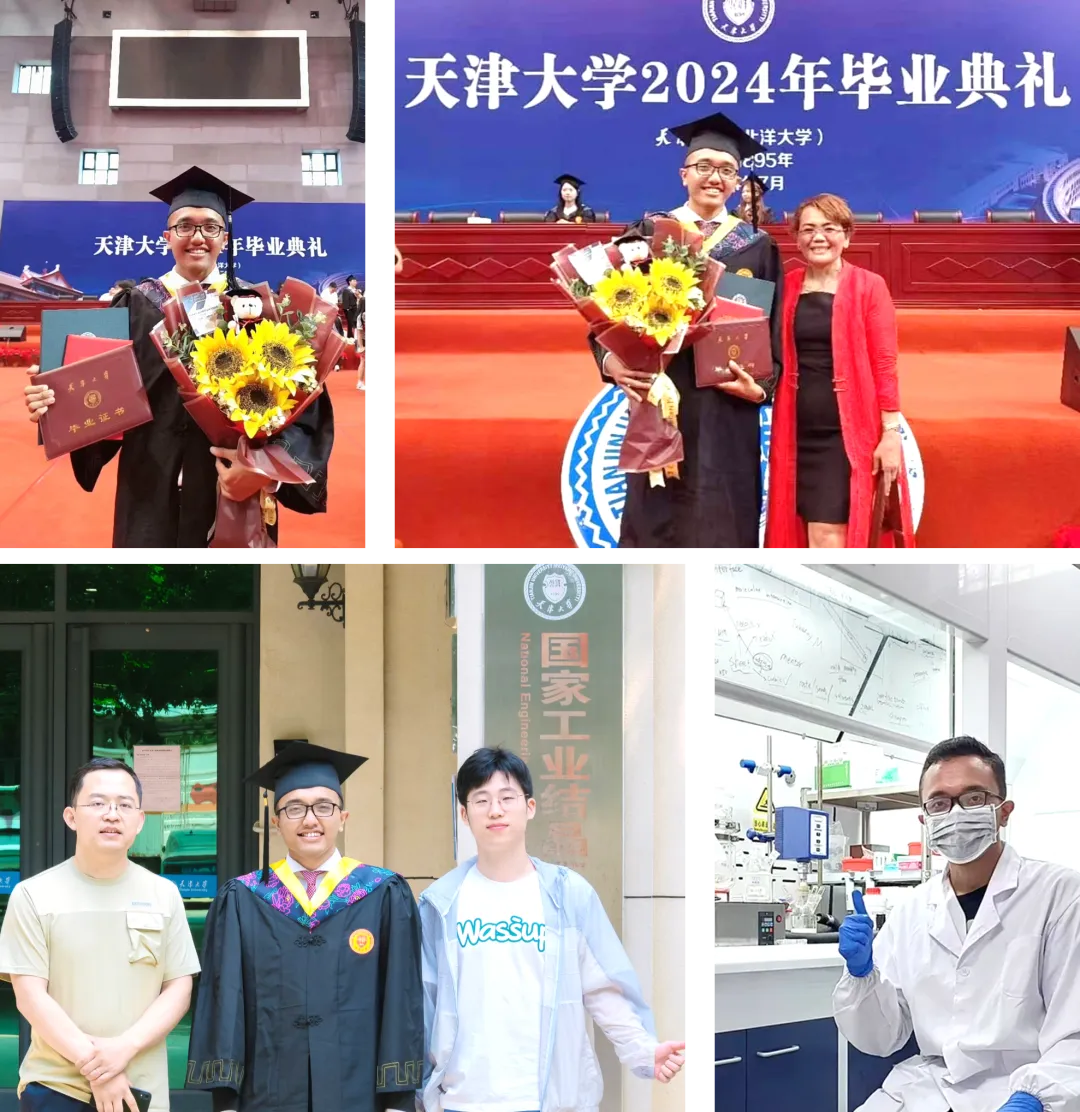 回顾我在天津大学的时光,我可以自信地说,我所接受的教育、宝贵的实习经历以及科研机会对我朝着工业方向的发展起到了关键作用。2021年到2024年,我作为团队负责人荣获了“天津大学杰出国际学生大使“称号,被评选为“天津大学优秀留学生”。彼时,我也非常自豪地邀请了一直在背后给予我鼓励和支持的母亲来天津大学参加我的毕业典礼,并作为唯一的印尼学生代表被授予“优秀毕业生“殊荣。